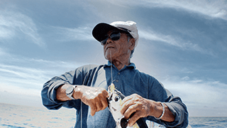 丸腰の節子さんが歌う。皆で船を漕ぎ、エイサーを踊る。海では魚が跳ねて、山では山羊が草を食べる。大きな雲が差し掛かる中、僕たちが“守る”べきものとはなんなのか?